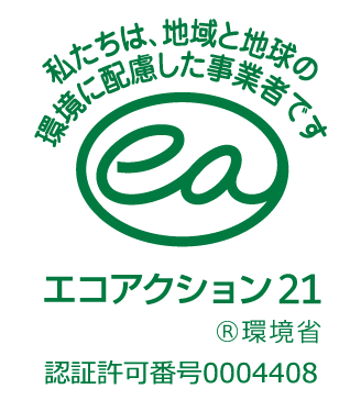 平成21年12月2日にエコアクション21の認証・登録しました。 ※登録・許可番号0004408 エコアクション21認証・登録証(PDF) |